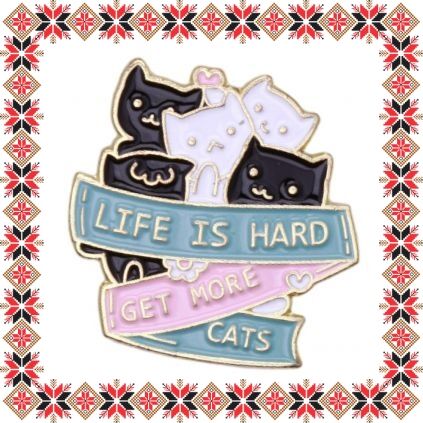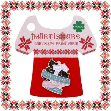 Martisor brosa tip pin in forma de pisicute cu mesajul Life is hart, get more gets, realizat in nuante de bleu, roz, alb si negru pe baza metalica aurie. Brosele au devenit in ultimii ani extrem de populare si reprezinta un accesoriu prin care purtatorii isi pot manifesta sentimentele si isi pot expune lumii, personalitatea, pasiunile si preferintele. Martisorul poate fi purtat ca brosa dupa sezonul de martisor atat pentru prinderea esarfei cat si ca accesoriu pe reverul sacoului/ paltonului sau pe geanta/ rucsac. Daruieste martisoare cu personalitate persoanelor dragi din viata ta!