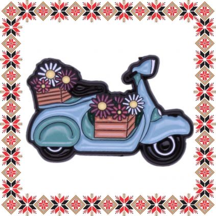 Martisor brosa tip pin in forma de scooter cu ladite cu flori, realizata in nuante de bleu si bej pe baza metalica neagra. Brosele au devenit in ultimii ani extrem de populare si reprezinta un accesoriu prin care purtatorii isi pot manifesta sentimentele si isi pot expune lumii, personalitatea, pasiunile si preferintele. Martisorul poate fi purtat ca brosa dupa sezonul de martisor atat pentru prinderea esarfei cat si ca accesoriu pe reverul sacoului/ paltonului sau pe geanta/ rucsac.  Daruieste martisoare cu personalitate persoanelor dragi din viata ta!