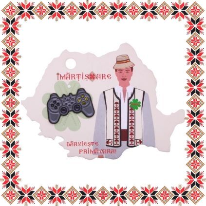 Martisor brosa tip pin in forma de joystick cu detaliu pisicuta, realizata cu gri si galben pe baza metalica neagra. Brosele au devenit in ultimii ani extrem de populare si reprezinta un accesoriu prin care purtatorii isi pot manifesta sentimentele si isi pot expune lumii, personalitatea, pasiunile si preferintele. Martisorul poate fi purtat ca brosa dupa sezonul de martisor atat pentru prinderea esarfei cat si ca accesoriu pe reverul sacoului/ paltonului sau pe geanta/ rucsac. Daruieste martisoare cu personalitate persoanelor dragi din viata ta!