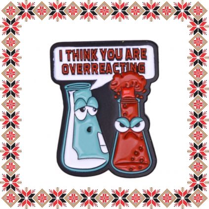 Martisor brosa tip pin cu mesajul I think you are overreacting si doua eprubete, realizata cu bleu si portocaliu pe baza metalica neagra. Brosele au devenit in ultimii ani extrem de populare si reprezinta un accesoriu prin care purtatorii isi pot manifesta sentimentele si isi pot expune lumii, personalitatea, pasiunile si preferintele. Martisorul poate fi purtat ca brosa dupa sezonul de martisor atat pentru prinderea esarfei cat si ca accesoriu pe reverul sacoului/ paltonului sau pe geanta/ rucsac. Daruieste martisoare cu personalitate persoanelor dragi din viata ta!