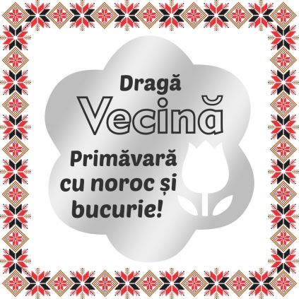 Brosa martisor in forma de floare cu perforatie lalea, realizata din inox de culoare argintie, gravata cu mesajul Draga Vecina, primavara cu noroc si bucurie! Daruieste martisoare personalizate odata cu venirea primaverii! Alege un martisor realizat din otel inoxidabil pentru ca primitoarea il va putea purta tot anul fara sa isi schimbe aspectul sau culoarea, daruieste zambete!