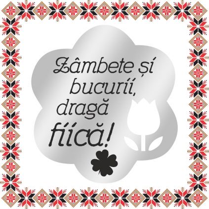 Brosa martisor in forma de floare cu perforatie lalea, realizata din inox de culoare argintie, gravata cu trifoias norocos si mesajul Zambete si bucurii, draga fiica! Daruieste martisoare personalizate odata cu venirea primaverii! Alege un martisor realizat din otel inoxidabil pentru ca primitoarea il va putea purta tot anul fara sa isi schimbe aspectul sau culoarea, daruieste zambete!