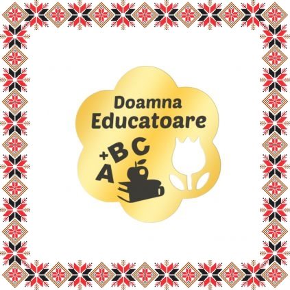 Brosa martisor in forma de floare cu perforatie lalea, realizata din inox de culoare aurie, gravata cu carti, mar si litere si mesajul Doamna Educatoare. Daruieste martisoare personalizate odata cu venirea primaverii! Alege un martisor realizat din otel inoxidabil pentru ca primitoarea il va putea purta tot anul fara sa isi schimbe aspectul sau culoarea, daruieste zambete!