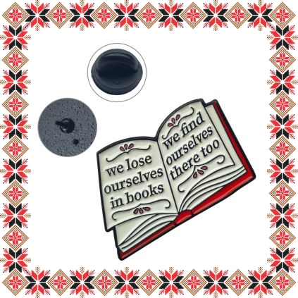Martisor brosa tip pin pentru pasionatele de citit, in forma de carte si mesajul We lose ourselves in books We find ourselves there too. Pinurile au devenit in ultimii ani extrem de populare si reprezinta un accesoriu prin care purtatorii isi pot manifesta sentimentele si isi pot expune lumii, personalitatea, pasiunile si preferintele. Martisorul poate fi purtat ca brosa dupa sezonul de martisor atat pentru prinderea esarfei cat si ca accesoriu pe reverul sacoului/ paltonului sau pe geanta/ rucsac. Daruieste un martisor deosebit care sa i se potriveasca perfect!