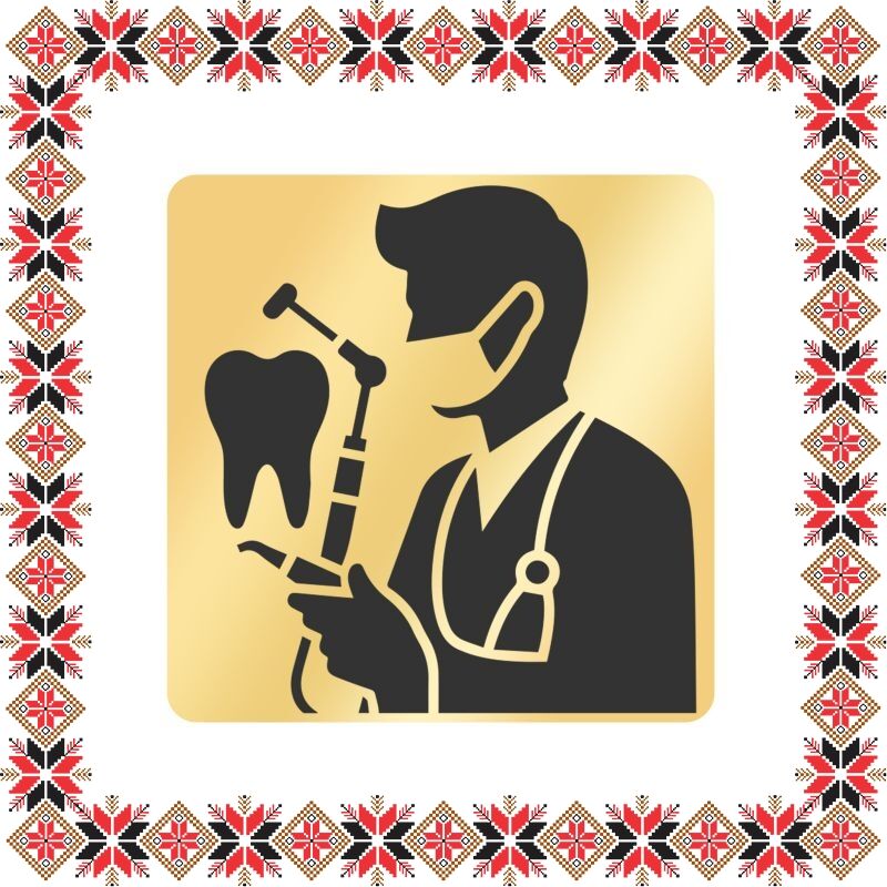 Martisor brosa personalizata - tablou pentru medici si asistenti stomatologi. Realizat din inox acoperit PVD cu aur si personalizat prin gravura laser cu ustensile, molar si silueta domnului doctor. Opteaza pentru un martisor realizat din otel inoxidabil pentru ca primitoarea sa il poata purta tot anul.