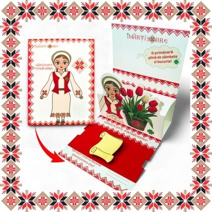 CADOU! Martisorul este insotit de snur de martisor, il vei primi ambalat elegant si vei primi pentru el si plic cu design inspirat din traditia romaneasca!