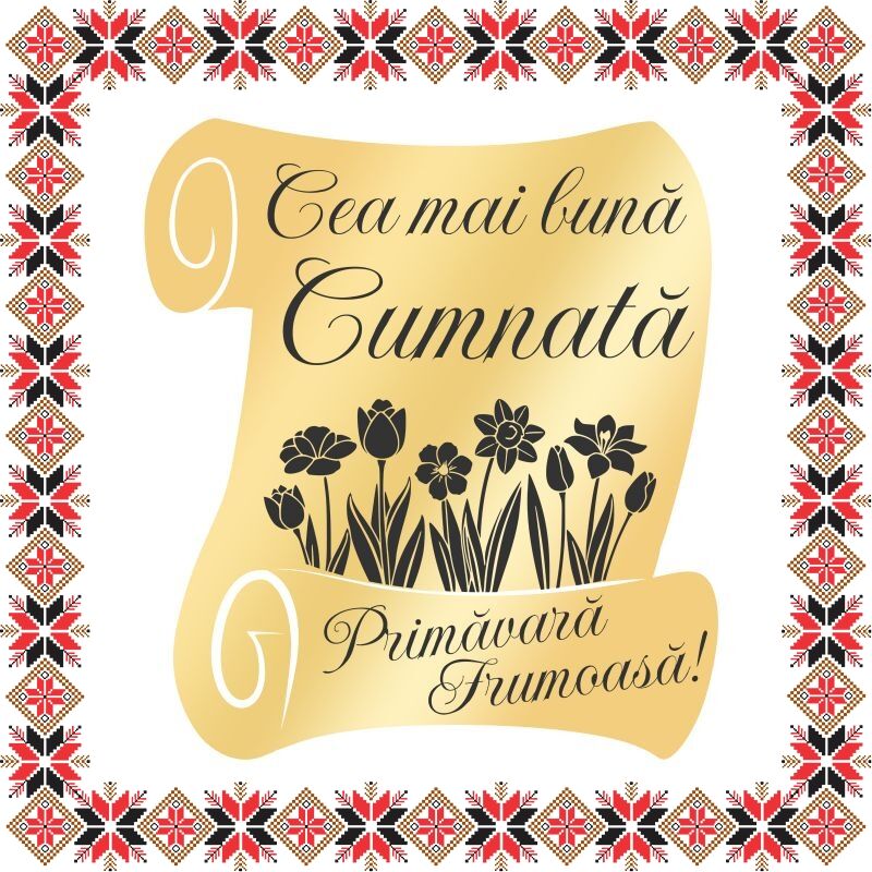 Martisor brosa personalizata in forma de pergament - scrisoare dedicatie cumnata. Realizat din inox acoperit PVD cu aur si personalizat prin gravura laser cu flori si mesajul Cea mai buna cumnata. Primavara frumoasa! Opteaza pentru un martisor realizat din otel inoxidabil pentru ca primitoarea sa il poata purta tot anul.