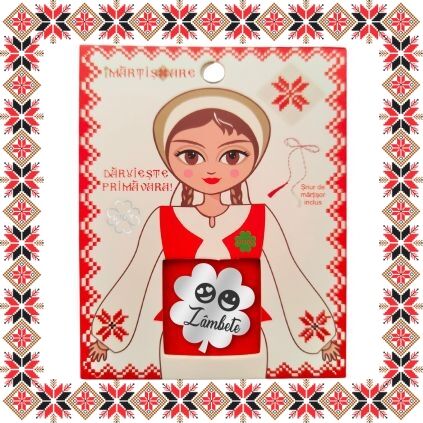 Martisor ambalat pe suport de carton cu catifea rosie si plic de carton cu motive traditionale romanesti. Martisorul este insotit de plic de hartie imprimat cu motive traditionale romanesti si snur de martisor. Deasemenea veti primi alaturi de martisor bucuria cu care noi l-am creat, tot ce trebuie sa faceti este sa adaugati bucuria daruirii si sa il oferiti persoanei dragi impreuna cu primavara.