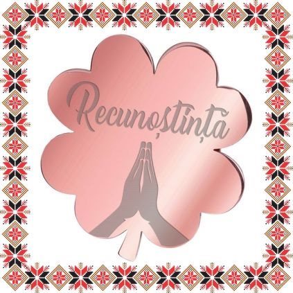 Brosa martisor in forma de trifoi cu patru foi din inox de culoare rose gold, gravata cu doua maini impreunate pentru multumire si cuvantul Recunostinta. Alege un martisor realizat din otel inoxidabil pentru ca primitoarea il va putea purta tot anul. Alege modelul care i se potriveste si fa-o sa zambeasca odata cu venirea primaverii!