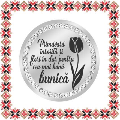Martisor Brosa Inox Banut Pietre Mesaj Bunica Argintiu