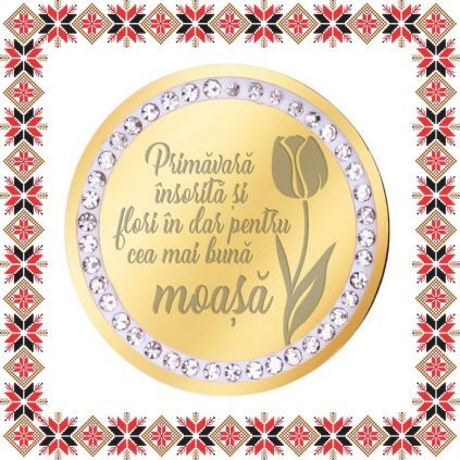Martisor Brosa Inox Banut Pietre Mesaj Moasa Auriu