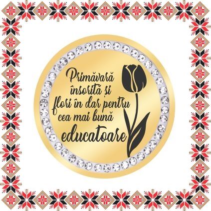 Martisor Brosa Inox Banut Pietre Mesaj Educatoare Auriu