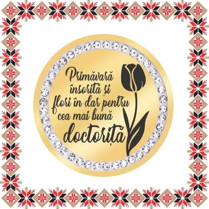 Martisor Brosa Inox Banut Pietre Mesaj Doctorita Auriu