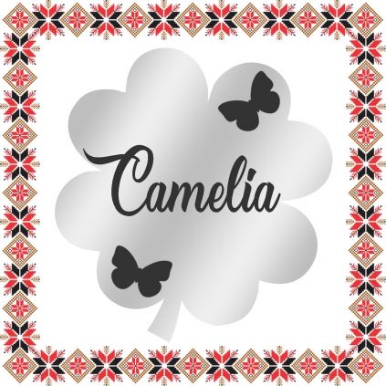 Brosa martisor in forma de trifoi cu patru foi din inox de culoare argintie, gravata cu doi fluturasi gingasi si numele ei, Camelia. Daruieste martisoare personalizate! Alege un martisor realizat din otel inoxidabil pentru ca primitoarea il va putea purta tot anul. Alege modelul care sa ii poarte numele si fa-o sa zambeasca odata cu venirea primaverii!