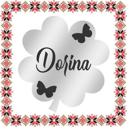 Brosa martisor in forma de trifoi cu patru foi din inox de culoare argintie, gravata cu doi fluturasi gingasi si numele ei, Dorina. Daruieste martisoare personalizate! Alege un martisor realizat din otel inoxidabil pentru ca primitoarea il va putea purta tot anul, fa-o sa zambeasca odata cu venirea primaverii!