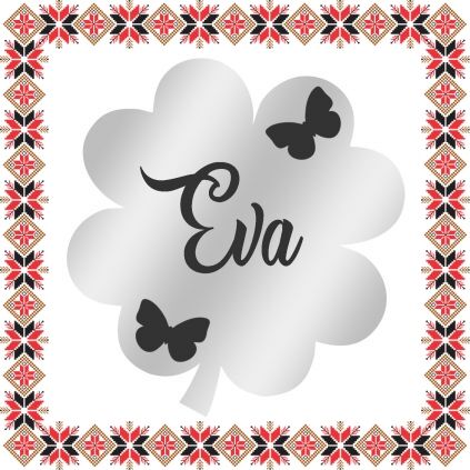 Brosa martisor in forma de trifoi cu patru foi din inox de culoare argintie, gravata cu doi fluturasi gingasi si numele ei, Eva. Daruieste martisoare personalizate! Alege un martisor realizat din otel inoxidabil pentru ca primitoarea il va putea purta tot anul. Alege modelul care sa ii poarte numele si fa-o sa zambeasca odata cu venirea primaverii!