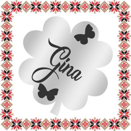 Brosa martisor in forma de trifoi cu patru foi din inox de culoare argintie, gravata cu doi fluturasi gingasi si numele ei, Gina. Daruieste martisoare personalizate! Alege un martisor realizat din otel inoxidabil pentru ca primitoarea il va putea purta tot anul. Alege modelul care sa ii poarte numele si fa-o sa zambeasca odata cu venirea primaverii!