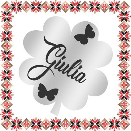 Brosa martisor in forma de trifoi cu patru foi din inox de culoare argintie, gravata cu doi fluturasi gingasi si numele ei, Giulia. Daruieste martisoare personalizate! Alege un martisor realizat din otel inoxidabil pentru ca primitoarea il va putea purta tot anul, fa-o sa zambeasca odata cu venirea primaverii!