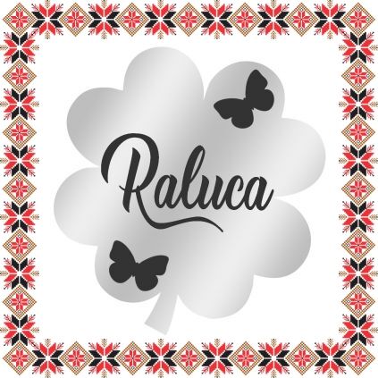 Brosa martisor in forma de trifoi cu patru foi din inox de culoare argintie, gravata cu doi fluturasi gingasi si numele ei, Raluca. Daruieste martisoare personalizate! Alege un martisor realizat din otel inoxidabil pentru ca primitoarea il va putea purta tot anul. Alege modelul care sa ii poarte numele si fa-o sa zambeasca odata cu venirea primaverii!