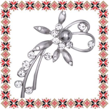 Brosa martisor in forma de floare cu pietricele multifatetate transparente si margeluta sidefata tip perla pe baza argintie realizata din metale comune. Daruieste flori de martisor!