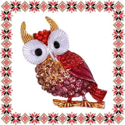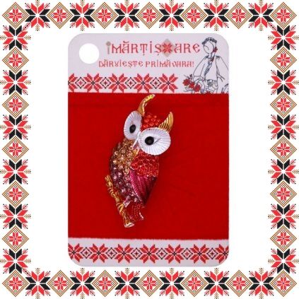 Brosa martisor in forma de bufnita cu email si pietricele multifatetate de diferite culori pe baza argintie realizata din metale comune. Daruieste intelepciune de martisor!