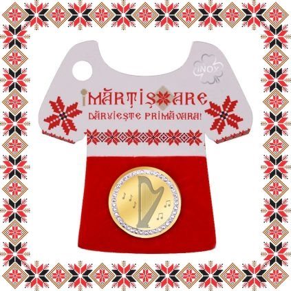 Martisor ambalat pe suport de carton in forma de ie romaneasca cu catifea rosie si motive traditionale romanesti. Martisorul este insotit de plic de hartie imprimat cu motive traditionale romanesti si snur de martisor. Deasemenea veti primi alaturi de martisor bucuria cu care noi l-am creat, tot ce trebuie sa faceti este sa adaugati bucuria daruirii si sa il oferiti persoanei dragi impreuna cu primavara.