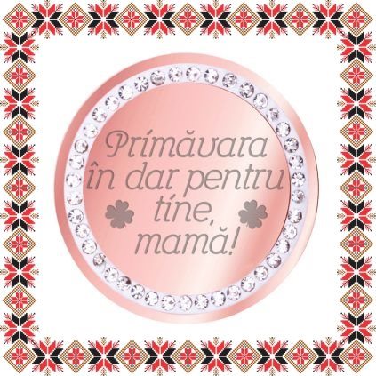 Brosa gravata cu doi trifoi norocosi si mesajul Primavara in dar pentru tine, mama! Brosa martisor banut din inox de culoare rose gold cu pietricele multifatetate transparente. Alege un martisor realizat din otel inoxidabil pentru ca primitoarea il va putea purta tot anul, fa-o sa zambeasca odata cu venirea primaverii!