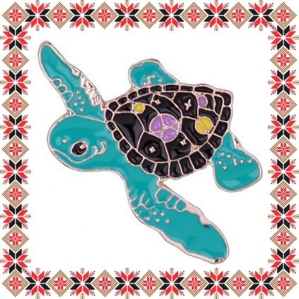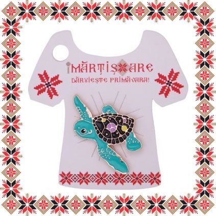 Brosa martisor in forma de broasca testoasa inotand, realizata din email de diferite culori pe baza de culoare aurie. Martisorul incarcat cu perseverenta si intelepciune si un strop de veselie!