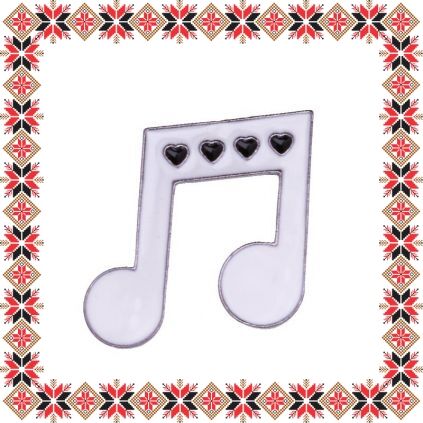 Brosa martisor in forma de note muzicale cu inimioare din email alb si negru pe baza de culoare argintie. Martisorul ideal pentru iubitoarele de muzica!