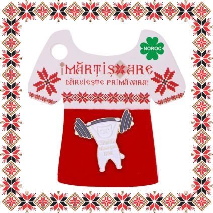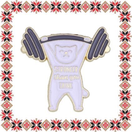 Brosa martisor in forma de pisicuta cu gantera si mesajul Stronger than you think din email alb si gripe baza de culoare aurie. Martisorul ideal pentru doamnele puternice, iubitoare de sport si sanatate!