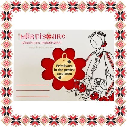 Martisor ambalat pe suport de carton cu catifea rosie si plic scrisoare de la doamna Primavara, de culoare bej cu motive traditionale romanesti. Martisorul este insotit de plic de hartie imprimat cu motive traditionale romanesti si snur de martisor. Deasemenea veti primi alaturi de martisor, bucuria cu care noi l-am creat, tot ce trebuie sa faceti este sa adaugati bucuria daruirii si sa il oferiti persoanei dragi impreuna cu primavara.