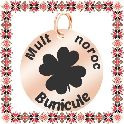 Martisor tip pandantiv in forma de banut norocos realizat din inox de culoare rose gold gravat cu trifoi cu patru foi si mesajul Mult Noroc Bunicule. Pandantivul este realizat din otel inoxidabil, un material rezistent ce nu isi modifica culoarea si aspectul in timp, aspect ce face din acest martisor un accesoriu extrem de versatil, usor de asortat mai multor tinute vestimentare si care poate fi purtat ca pandantiv pe lantisor si dupa sezonul de martisor. Gravam cu bucurie martisoare special create pentru oamenii dragi din viata ta!