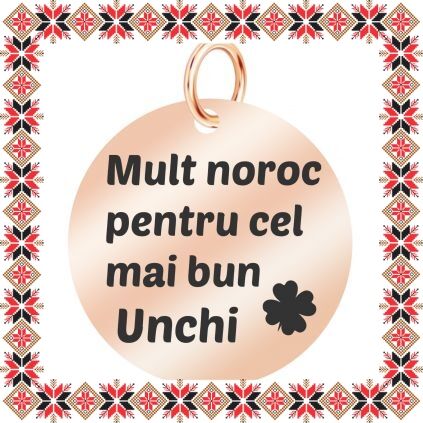 Martisor tip pandantiv in forma de banut norocos realizat din inox de culoare rose gold gravat cu trifoi cu patru foi si mesajul Mult noroc pentru cel mai bun Unchi. Pandantivul este realizat din otel inoxidabil, un material rezistent ce nu isi modifica culoarea si aspectul in timp, aspect ce face din acest martisor un accesoriu extrem de versatil, usor de asortat mai multor tinute vestimentare si care poate fi purtat ca pandantiv pe lantisor si dupa sezonul de martisor. Gravam cu bucurie martisoare special create pentru oamenii dragi din viata ta!
