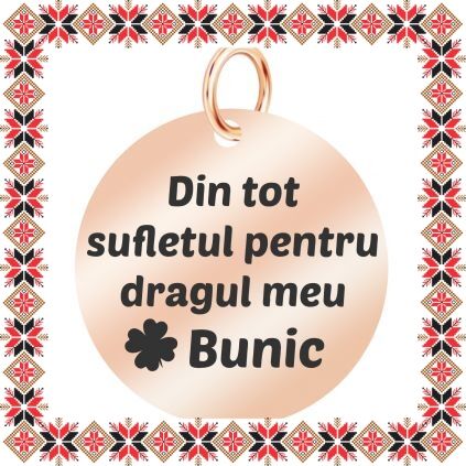 Martisor tip pandantiv in forma de banut norocos realizat din inox de culoare rose gold gravat cu trifoi cu patru foi si mesajul Din tot sufletul pentru dragul meu Bunic. Pandantivul este realizat din otel inoxidabil, un material rezistent ce nu isi modifica culoarea si aspectul in timp, aspect ce face din acest martisor un accesoriu extrem de versatil, usor de asortat mai multor tinute vestimentare si care poate fi purtat ca pandantiv pe lantisor si dupa sezonul de martisor. Gravam cu bucurie martisoare special create pentru oamenii dragi din viata ta!