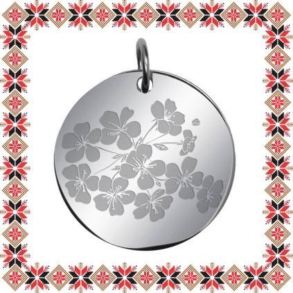 Pandantiv martisor in forma de banut norocos din inox de culoare argintie gravat cu o crenguta cu flori frumoase de cires! Daruieste frumusete de martisor! Alege un martisor realizat din otel inoxidabil pentru ca primitoarea il va putea purta tot anul. Alege modelul care i se potriveste si fa-o sa zambeasca odata cu venirea primaverii!