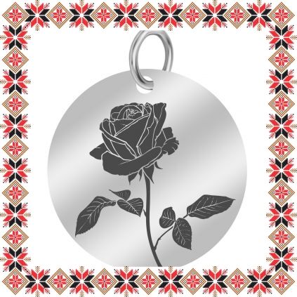 Pandantiv martisor in forma de banut norocos din inox de culoare argintie gravat cu tablou cu trandafir. Daruieste flori de martisor! Alege un martisor realizat din otel inoxidabil pentru ca primitoarea il va putea purta tot anul. Alege modelul care i se potriveste si fa-o sa zambeasca odata cu venirea primaverii!