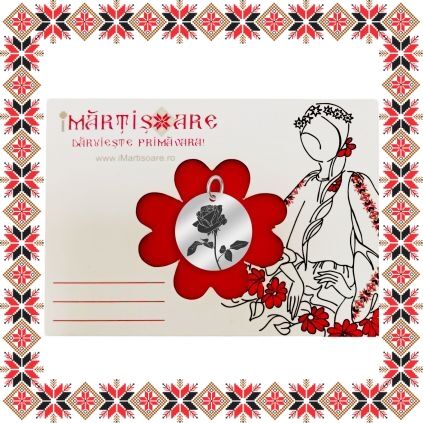 Martisor ambalat pe suport de carton cu catifea rosie si plic scrisoare de la doamna Primavara, de culoare bej cu motive traditionale romanesti. Martisorul este insotit de plic de hartie imprimat cu motive traditionale romanesti si snur de martisor. Deasemenea veti primi alaturi de martisor bucuria cu care noi l-am creat, tot ce trebuie sa faceti este sa adaugati bucuria daruirii si sa il oferiti persoanei dragi impreuna cu primavara.