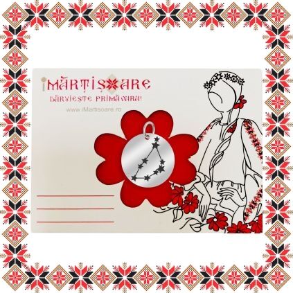 Martisor ambalat pe suport de carton cu catifea rosie si plic scrisoare de la doamna Primavara, de culoare bej cu motive traditionale romanesti. Martisorul este insotit de plic de hartie imprimat cu motive traditionale romanesti si snur de martisor. Deasemenea veti primi alaturi de martisor bucuria cu care noi l-am creat, tot ce trebuie sa faceti este sa adaugati bucuria daruirii si sa il oferiti persoanei dragi impreuna cu primavara.