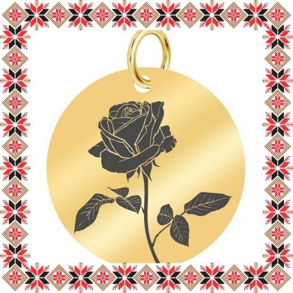 Pandantiv martisor in forma de banut norocos din inox de culoare aurie gravat cu tablou cu trandafir. Daruieste flori de martisor! Alege un martisor realizat din otel inoxidabil pentru ca primitoarea il va putea purta tot anul. Alege modelul care i se potriveste si fa-o sa zambeasca odata cu venirea primaverii!