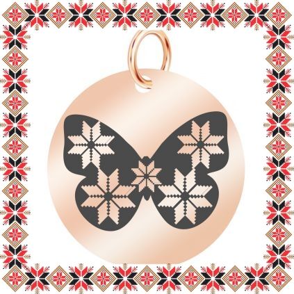 Pandantiv martisor in forma de banut norocos din inox de culoare rose gold gravat cu fluture cu motive traditionale romanesti. Daruieste gingasie de martisor! Alege un martisor realizat din otel inoxidabil pentru ca primitoarea il va putea purta tot anul. Alege modelul care i se potriveste si fa-o sa zambeasca odata cu venirea primaverii!