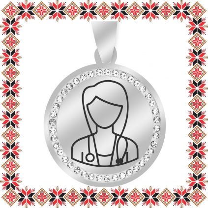 Martisor Pandantiv Inox Banut Pietre Argintiu Silueta Doctor
