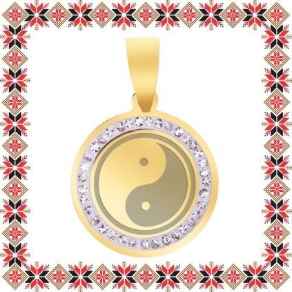 Martisor Pandantiv Inox Banut Pietre Yin Yang Auriu