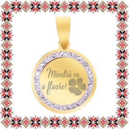 Martisor Pandantiv Inox Banut Pietre Mandra Floare Auriu