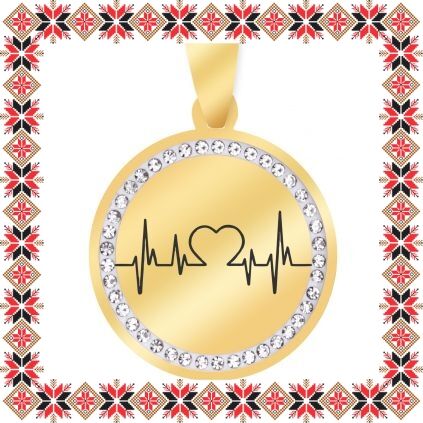Pandantiv martisor in forma de banut norocos din inox de culoare aurie cu pietricele multifatetate transparente. Pandantiv gravat cu inima si ritm cardiac. Daruieste recunostinta de martisor! Alege un martisor realizat din otel inoxidabil pentru ca primitoarea il va putea purta tot anul, fa-o sa zambeasca odata cu venirea primaverii!