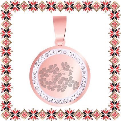 Martisor Pandantiv Inox Banut Pietre Flori de Cires Rose Gold
