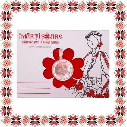 Martisor ambalat pe suport de carton cu catifea rosie si plic scrisoare de la doamna Primavara, de culoare bej cu motive traditionale romanesti. Martisorul este insotit de plic de hartie imprimat cu motive traditionale romanesti si snur de martisor. Deasemenea veti primi alaturi de martisor bucuria cu care noi l-am creat, tot ce trebuie sa faceti este sa adaugati bucuria daruirii si sa il oferiti persoanei dragi impreuna cu primavara.
