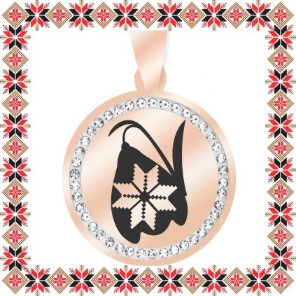 Pandantiv martisor in forma de banut norocos din inox de culoare rose gold cu pietricele multifatetate transparente. Pandantiv gravat cu ghiocel cu motive traditionale romanesti. Alege un martisor realizat din otel inoxidabil pentru ca primitoarea il va putea purta tot anul, fa-o sa zambeasca odata cu venirea primaverii!