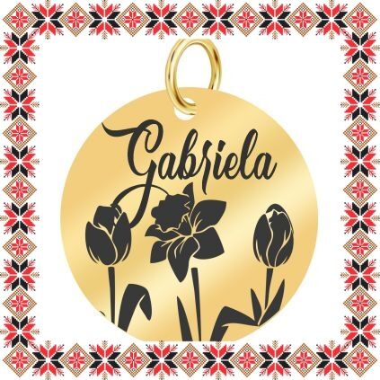 Pandantiv martisor in forma de banut norocos din inox de culoare aurie gravat cu flori, lalale si narcisa si numele doamnei dragi din viata ta, Gabriela! Daruieste martisoare personalizate! Alege un martisor realizat din otel inoxidabil pentru ca primitoarea il va putea purta tot anul. Alege modelul care i se potriveste si fa-o sa zambeasca odata cu venirea primaverii!