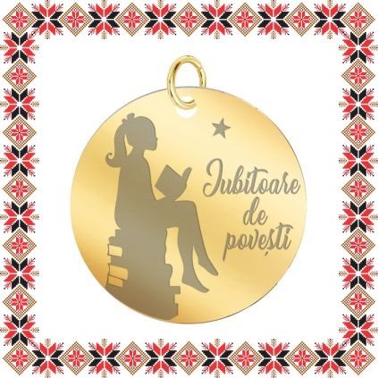 Pandantiv martisor in forma de banut norocos din inox de culoare aurie gravat cu o fata citind pe un teanc de carti, o stea si mesajul Iubitoare de povesti! Un martisor personalizat, incarcat de semnificatie, creat special pentru ea!Alege un martisor realizat din otel inoxidabil pentru ca nu isi schimba culoarea, este rezistent in timp si poate fi purtat tot anul ca accesoriu la colier, potrivit oricarei tinute. Ofera primavara in dar cu un martisor special!