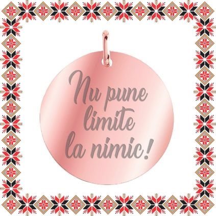Pandantiv martisor in forma de banut norocos din inox de culoare rose gold gravat cu mesajul Nu pune limite la nimic! Martisor personalizat creat cu drag si bucurie! Un martisor personalizat, incarcat de semnificatie, creat special pentru ea!Alege un martisor realizat din otel inoxidabil pentru ca nu isi schimba culoarea, este rezistent in timp si poate fi purtat tot anul ca accesoriu la colier, potrivit oricarei tinute. Ofera primavara in dar cu un martisor special!